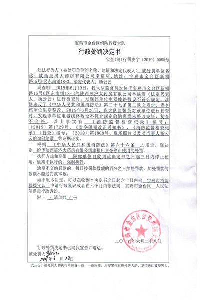 给予陕西辰济大药房有限公司幸福店责令停止使用的处罚