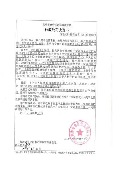宝金公(消)行罚决字〔2019〕0085号