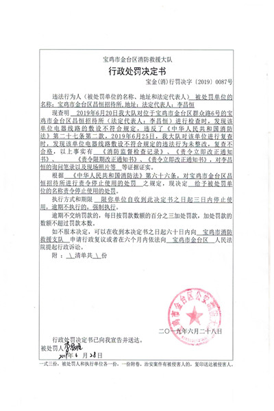 宝金公(消)行罚决字〔2019〕0087号