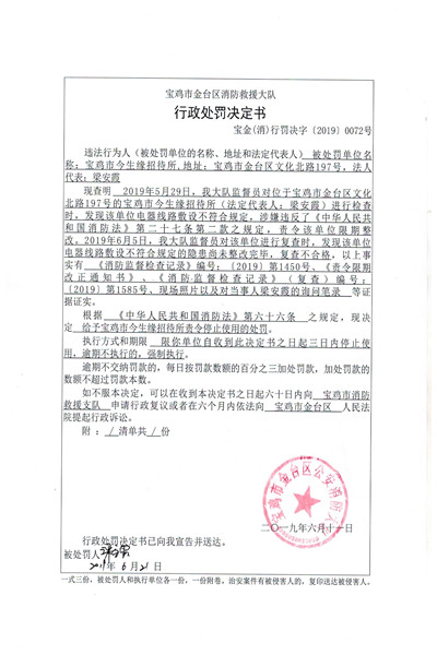 宝金公(消)行罚决字〔2019〕0072号