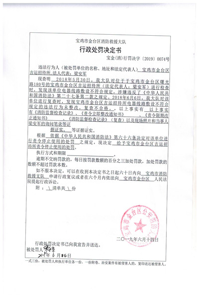 宝金公(消)行罚决字〔2019〕0074号