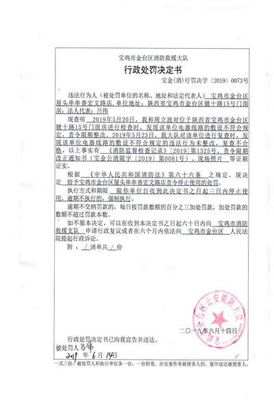 宝金(消)行罚决字〔2019〕0073号