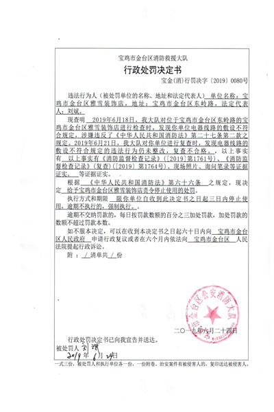 宝金(消)行罚决字〔2019〕0080号
