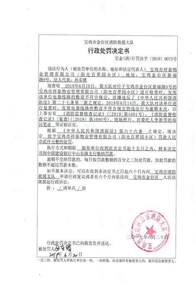 宝金(消)行罚决字〔2019〕0075号