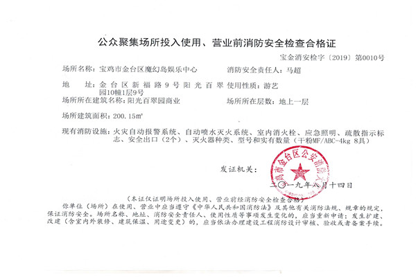 公众聚集场所投入使用、营业前消防安全检查合格证