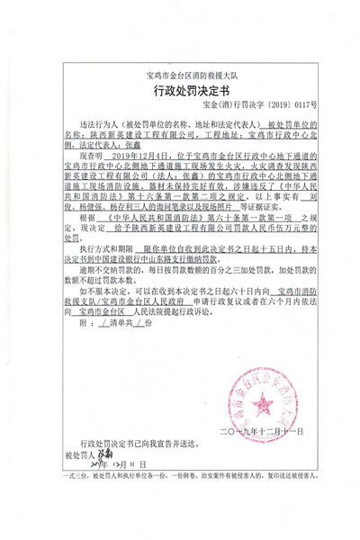 宝金公(消)行政决字〔2019〕0117号