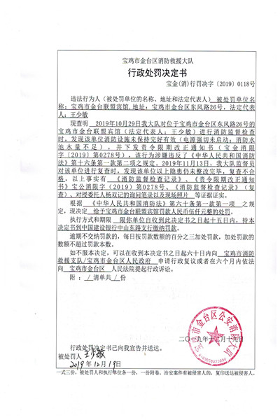 宝金(消)行罚决字〔2019〕0118号