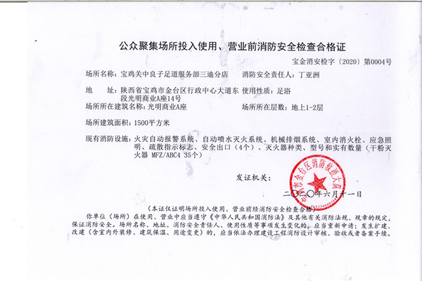 公众聚集场所投入使用、营业前消防安全检查合格证